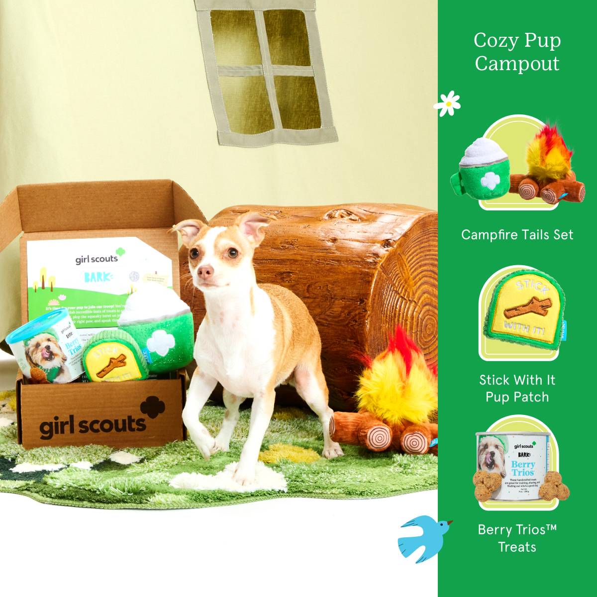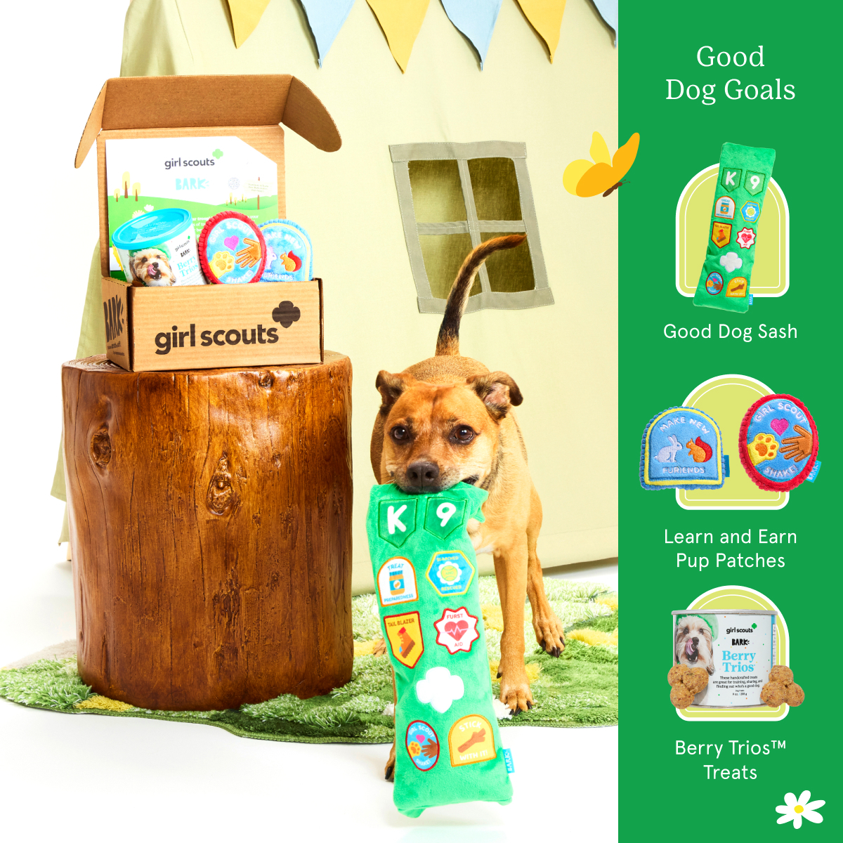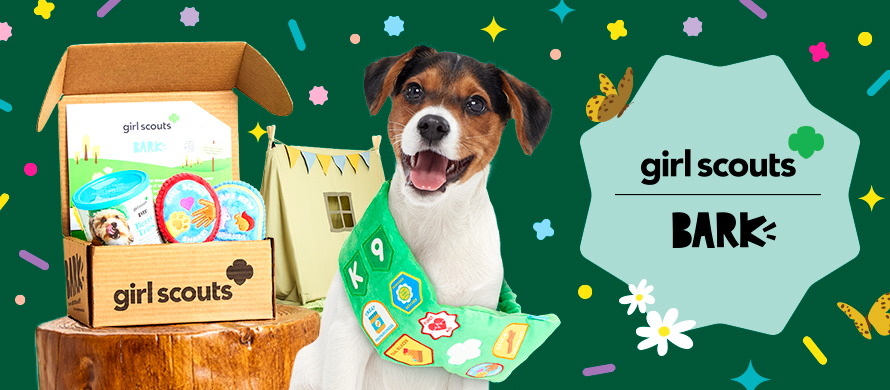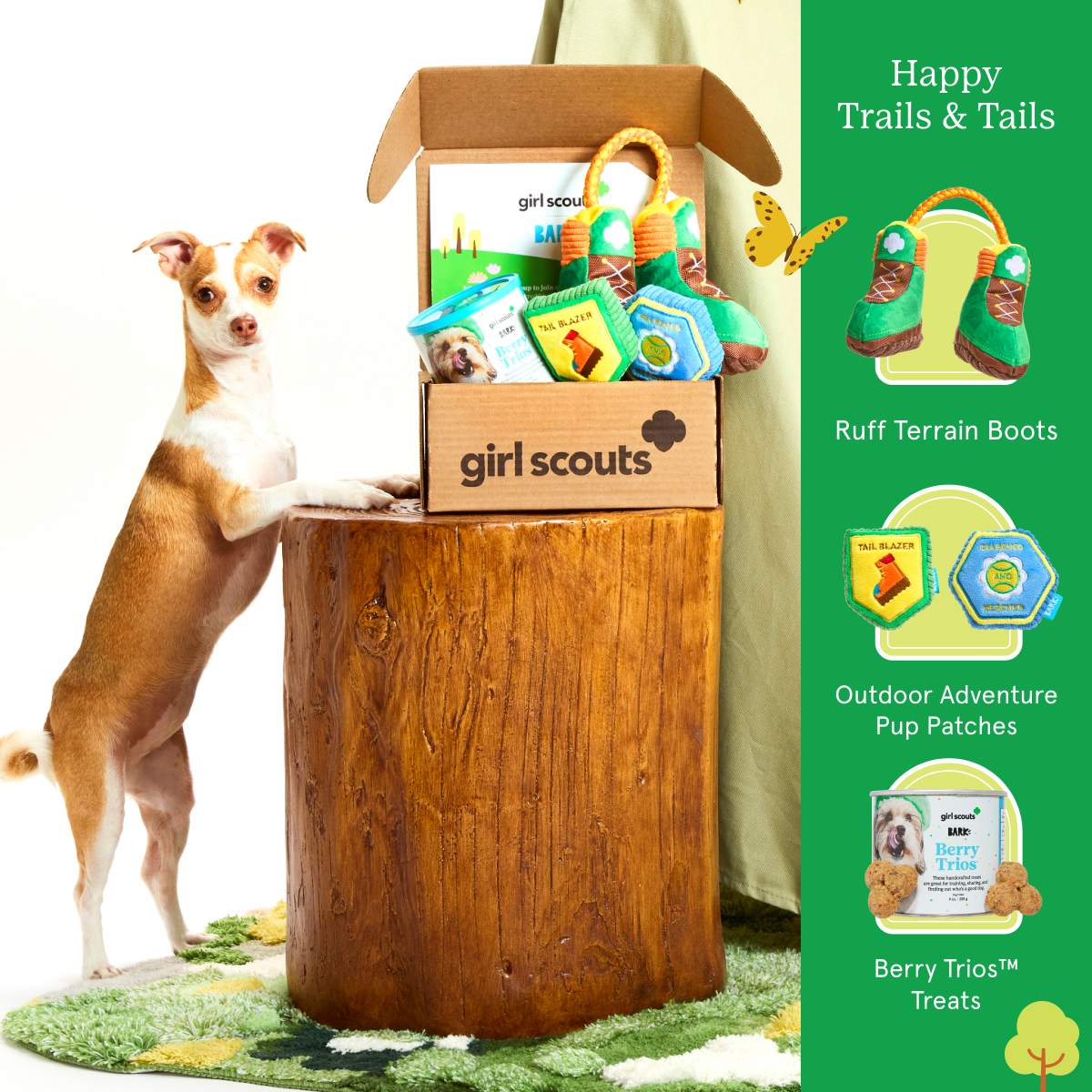 Girl Scouts sell limited-edition Girl Scout–themed BarkBoxes as part of the Badgerland Fall Fundraiser! Each box is packed with exclusive toys and treats that celebrate the spirit of Girl Scouts—perfect for pups who love adventure.
